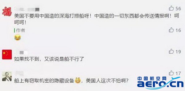說起來,美日等國總是擔心“中國造”有各種安全隱患,進口一部手機、一枚芯片也“如臨大敵”,這次打撈黑匣子,卻沒能躲開“中國制造”。這一消息也引發了網友的熱鬧討論: