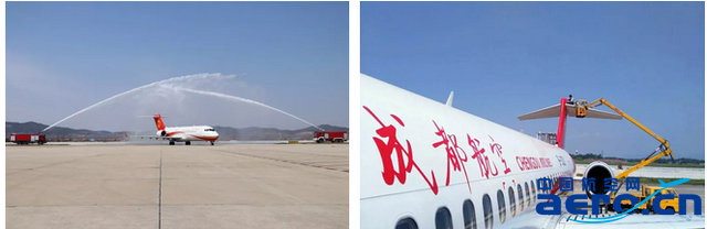 目前成都航空公司使用ARJ21機(jī)型執(zhí)行哈爾濱機(jī)場(chǎng)往返黑河、五大連池、撫遠(yuǎn)、佳木斯及成都等地,執(zhí)行航班任務(wù)。
