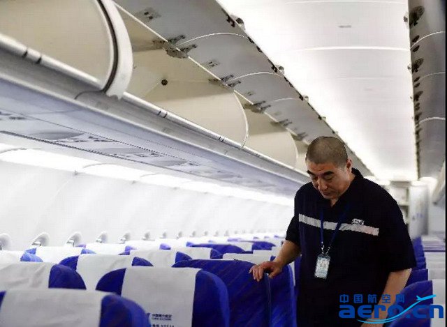 吳向陽檢查客艙座椅。