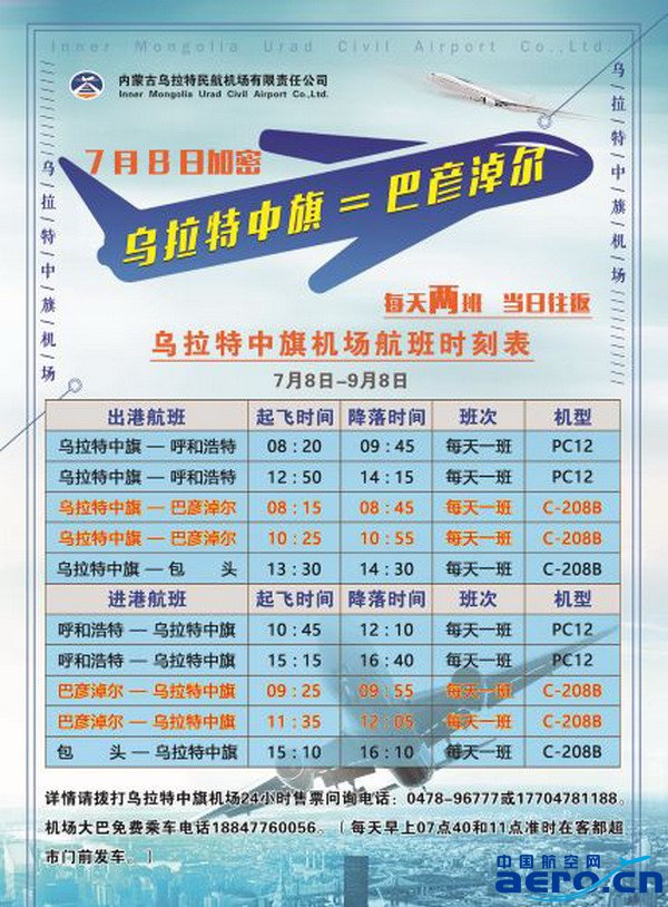 圖:烏拉特中旗機場航班時刻表