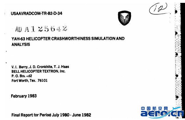 ▲基于YAH-63原型機進行的墜落沖擊模擬測試報告封面