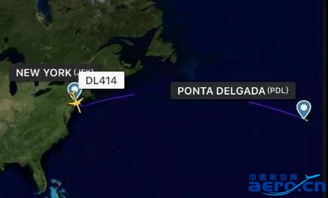 該飛機(jī)執(zhí)飛紐約肯尼迪到大西洋亞速爾島的航班