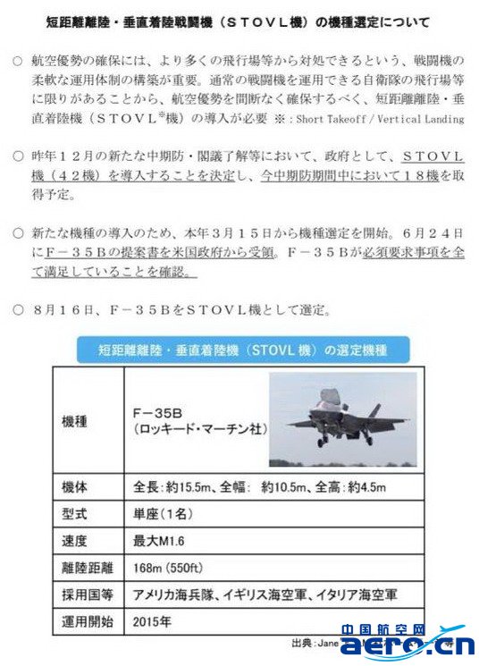 日本防衛省于2019年8月16日做出決定,將購買42架F-35B 戰斗機,以增強日本在其南部島嶼的空中能力。為了便于F-35B起降,日本海上自衛隊最大護衛艦“出云”號將進行改裝。