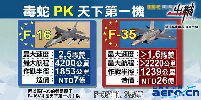 近一段時間以來,臺媒熱衷于炒作F-16V對大陸戰機的優勢,甚至發表出“F-16V足以對抗殲-20”的奇葩言論來。其真實性如何,實際上明眼人一看便知,但仔細想想,對于一個連吃榨菜茶葉蛋都能大驚小怪的中國省份來說,出現這些言論也見怪不怪。臺媒此次炒作F-16V,也是為了掩蓋未能如愿購買F-35的失落。也有臺灣“專家”通過列舉數據對比,試圖證明F-16V強于F-35,無非是掩耳盜鈴,徒增笑耳。