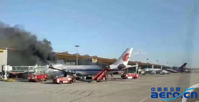 當天下午5時左右,北京首都機場有旅客發(fā)現(xiàn),停靠在T3E航站樓的一架中國國際航空A330型飛機“冒煙”,機場方面派出了消防車到場撲救。據(jù)現(xiàn)場人士告訴上游新聞記者,飛機著火后火勢迅速蔓延,“機頭上部已經(jīng)燒穿,飛機結(jié)構(gòu)可能已經(jīng)被破壞”。首都機場則表示,經(jīng)向現(xiàn)場工作人員了解飛機上未見明火,首都機場已啟動相關(guān)預(yù)案予以處置。