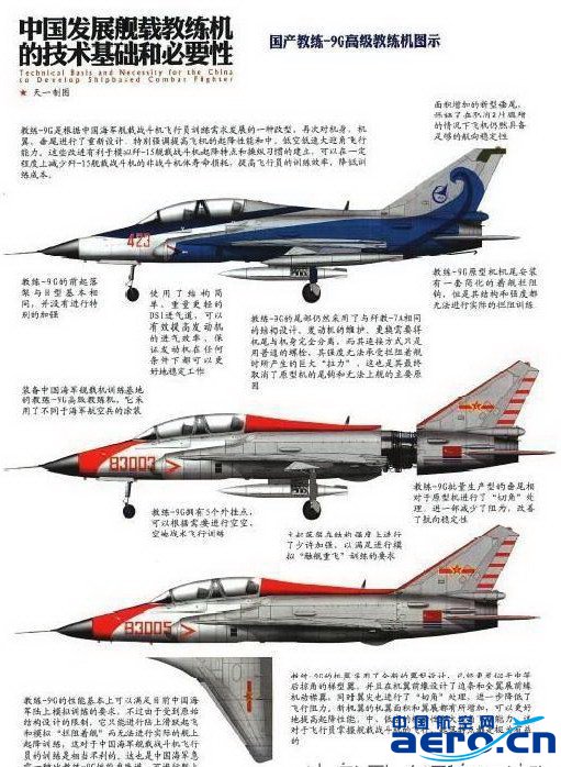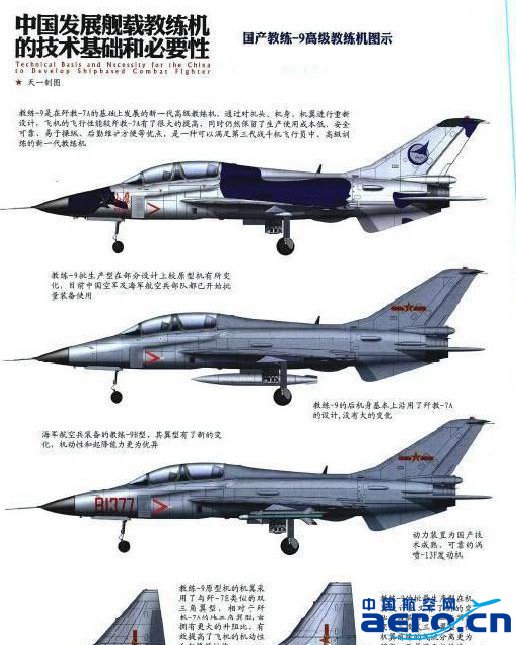 教練-9是貴飛在殲教-7的基礎上,重新設計氣動布局研制的一款高級教練機,最大的特點就是研制快、服役快,基本滿足二、三代機的訓練需要。但是畢竟是在二代機基礎上改進,受到原始設計的限制可以拓展改進空間比較小。