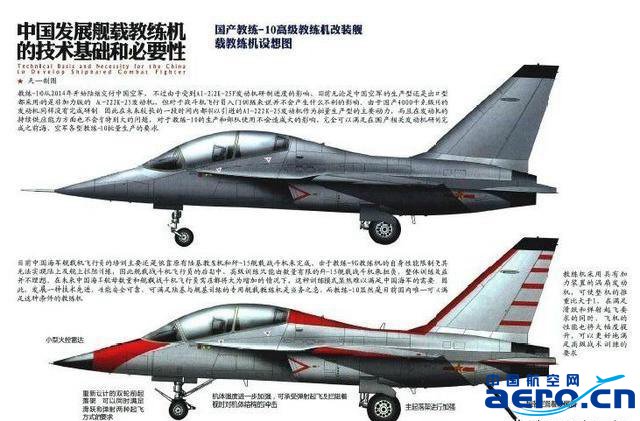 教練-10教練機,是洪都航空按照國際標準研制的雙座雙發超音速高級教練機,采用大邊條翼氣動布局、高度翼身融合體結構,先進數字飛控電傳系統和綜合航電系統。和教練-9相比整體氣動性能好、推重比大,有更大的改進空間和發展潛力,而且雙發布局明顯更適合承擔艦載教練機任務。