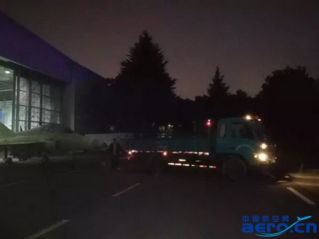 2019年10月14日晚,航空工業某架份山鷹飛機在牽引車的拖拽下,緩緩從貴飛總裝分廠內駛出。