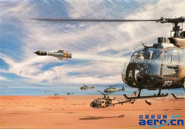 法軍小羚羊直升機 發生熱式反坦克導彈的假想圖