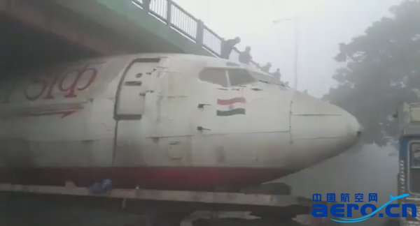 被卡在橋下的印度飛機(圖片來源:俄羅斯衛星通訊社)
