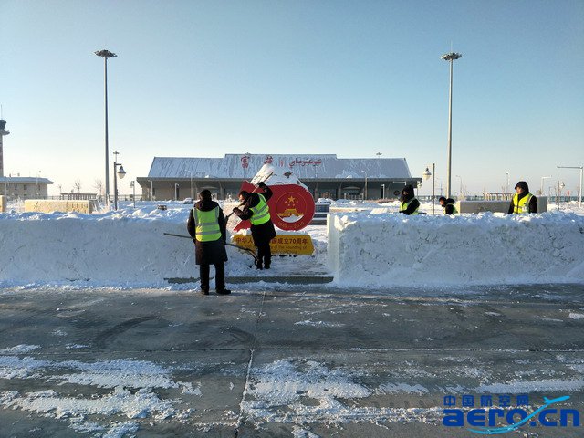 據悉,此次冬季雪雕作品,主題鮮明,由航空安全保衛部負責地打造的雪雕,主要以機場企業文化為打造亮點,在機場大門口正方位國慶70周年標志兩側分別用木板為模具堆砌兩道長3米,寬1.5米,高1.5米的“雪墻”,作品背景由“天涯比鄰,緣結四海”八個大字組成,運用流暢的中國書法與雪雕融為一體,呈現了富蘊機場與四方賓客結緣,志存高遠,視所有旅客為友鄰,珍惜每一位旅客的緣分,不斷提升安全、服務、效益的機場文化。