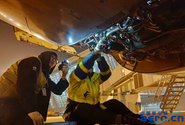 在當天的保障中,浦東維修基地空客航線維修部高度重視,安排多名經驗豐富的維修與放行人員,順利完成該航班的維修保障工作。在前序的航后工作中,放行人員黃海川所帶領的放行小組在完成各類指定工作單卡的同時,與基地生產技術部緊密聯系、協同配合,高效恢復了機上WIFI的正常使用,以保證首航旅客良好的乘機體驗。在出港前的保障工作中,放行人員薛飛手持工作單卡與手電對飛機進行詳細的繞機檢查,為飛機再做一次“全身體檢”;維修人員在客艙內仔細檢查著每一個座椅、小桌板以及娛樂系統等設施設備,不放過任何一個細小瑕疵;航班的跟班機務朱剛與方國平也提前到達飛機,密切關注各項技術狀態,并與放行小組一起與機組進行溝通,并確認飛機的各項狀況,全力確保本次航班的安全運行。