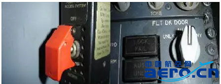 20、檢查內容或執行標準:檢查駕駛艙門固定牢靠、無損傷,門鎖良好,測試電磁鎖工作正常(先把紅色電門打下來,然后把FLT DK DOOR電門打到UNLOCK位置,能聽到電磁鎖的咔嗒聲)。
