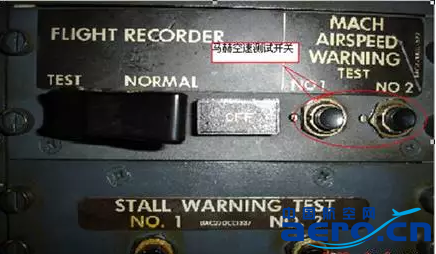 1.分別按壓并保持P5板馬赫空速測試開關,確保分別聽到有“噼噼啪啪”的音響警告的聲音。