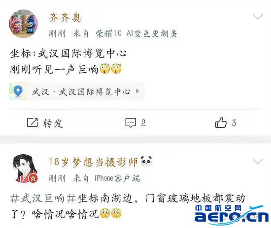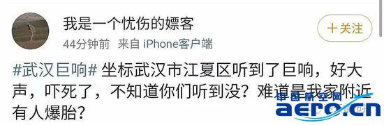 身在東西湖區的網友“不是不是大明湖畔夏雨荷的女兒”稱,聽到的聲音像飛機的轟鳴聲。
