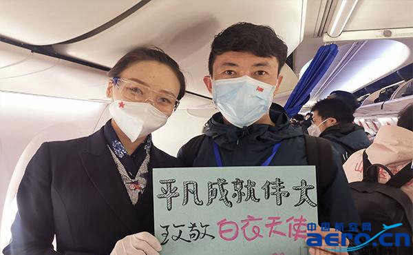 乘務長張燁收到旅客的感謝后,她感慨的說:“正是抗疫英雄們挺身而出的守護,才為我們撐起了一方安全的天空。馬先生是其中一個縮影,在與醫護人員的交流中我得知還有很多戰“疫”英雄,因為奮戰在抗疫一線,有人不能像往年一樣陪心愛的女兒過生日;有人妻子臨產,卻不能當面看剛出生的孩子一眼;有的臨近婚期,還沒來得及跟未婚夫拍婚紗照;還有的因為緊急出發,錯過了春節的全家福……因為要守護生命,他們舍棄了這些在平日里原本觸手可及的愿望。因為有他們,山河可無恙,人間皆可安。此次能為英雄達成心愿是我們的榮幸,英雄背后,我們都是后援團!”