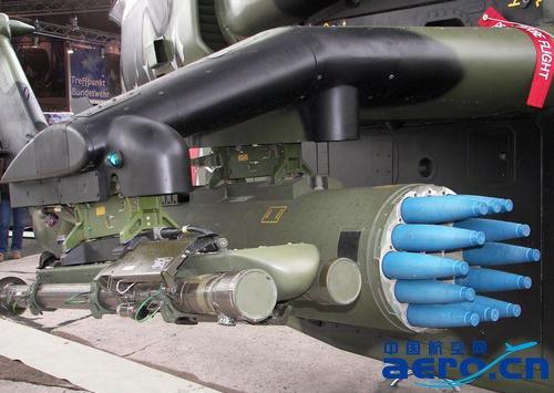 虎式HAP的兩側同樣有一對短翼,各有兩個掛載點;由于虎式HAP使用阻力較小的RMS偵搜儀,所以籌載量高于虎式反裝甲型,達1800kg。通常內側掛點加掛一具22聯裝SNEB 68mm火箭發射器,外側則加裝雙聯裝西北風空對空導彈發射器。