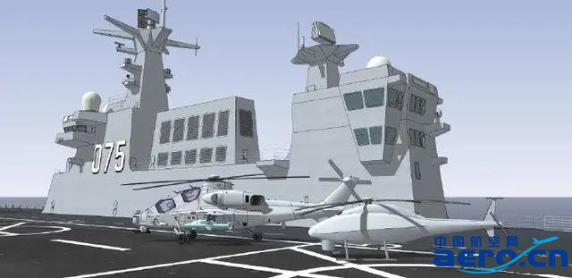 我國075型兩棲攻擊艦服役后近30架艦載機采用的艦載機搭載模式一定是混搭模式,其中運輸預(yù)警以運8系列直升機為主,反潛則是我國正在測試的直20直升機,火力打擊則是以直10/19為主,再配合新型的艦載無人直升機的配合,形成完備的艦載機作戰(zhàn)體系。如果未來在南海、東海等重要的戰(zhàn)略方向,進行登陸作戰(zhàn),加上我國8艘071型船塢登陸艦配合,戰(zhàn)力將會倍增,登陸作戰(zhàn)速度也將事半功倍。075上的艦載無人直升機,從體積來說應(yīng)該是AR500C的放大改進型,很可能是專門研制的。由于075搭載直升機的數(shù)量很多,除了直-8、直-20這樣的艦載運輸直升機之外,可以預(yù)見直-10或直-19也會上艦擔(dān)當(dāng)火力打擊任務(wù),掩護兩棲艦隊進行登陸,而無人直升機主要還是擔(dān)當(dāng)哨兵角色,進行偵查任務(wù),其體積可能介于MQ-8B和MQ-8C之間。075是繼兩艘航母、055型萬噸大驅(qū)之后,第3種裝備了先進的精密進場雷達(PAR)的戰(zhàn)艦,設(shè)計之初就考慮利用這種功能上遠超傳統(tǒng)的直升機導(dǎo)航雷達、光學(xué)助降系統(tǒng)的新設(shè)備,來自動引導(dǎo)艦載無人直升機起降,這也意味著,這種新型艦載無人直升機,也將成為055上的常客。