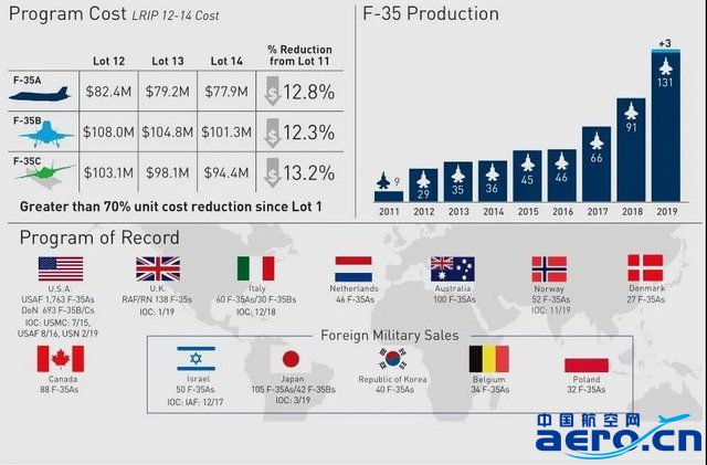 另外,美國海軍陸戰隊的F-35B已接收96架,海軍及海軍陸戰隊的F-35C已接收50架;在第3季度結束前,美國三個型號的F-35將達到400架。