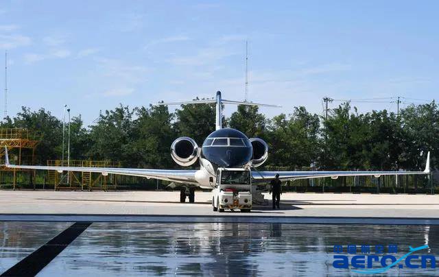 ↑9月17日,龐巴迪(天津)航空服務(wù)有限公司工作人員在機(jī)坪檢查飛機(jī)機(jī)身。