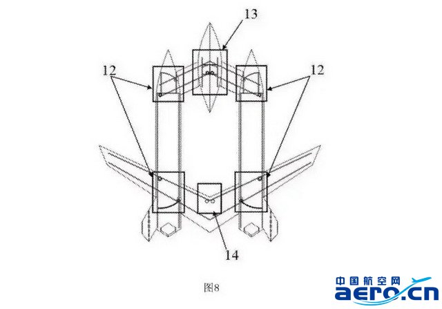 前面我們提及該無人機方案的前掠翼是可以調整角度的,實際上,沈飛的設計更為復雜,它連兩個機身距離也是可以變動的,對,就像尺子一樣。在亞音速飛行時,兩個機身拉開距離,形成盒形機體,前掠翼伸出,以達到最大的升力,節省油耗,增加飛機的續航時間。而當整機超音速飛行時,兩個機身距離拉近,最終接近“合二為一”,而前掠翼則完全被收進機身下,減少阻力,滿足高超音速飛行的客觀需求,減少飛行阻力,可謂是設計巧妙至極了。