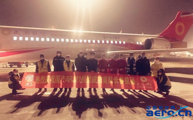 1月17日19時(shí)03分,成都航空執(zhí)飛的長春—威海EU1875航班平穩(wěn)起飛,標(biāo)志著國產(chǎn)ARJ-21機(jī)型在長春機(jī)場的首航圓滿成功。