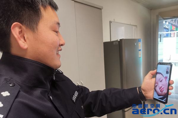 勤務間隙,民警小謝與兒子視頻連線(朱旭/攝)