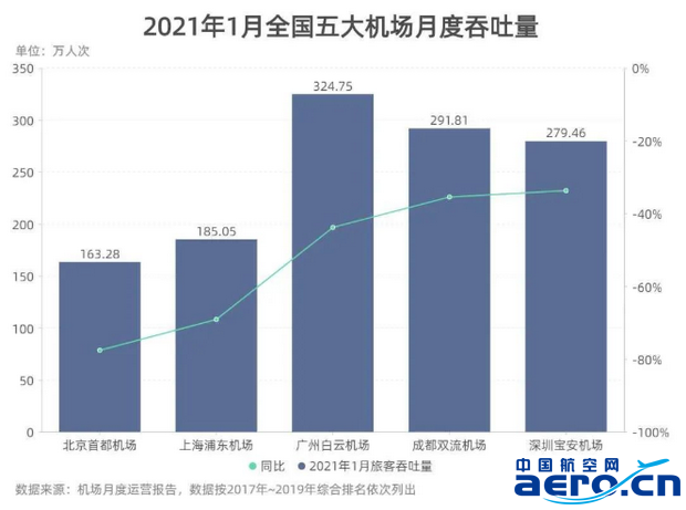 從這五大機場2021年1月的運營數據表現,基本可以判斷2021年1月旅客的出行變化和民航機場的發展態勢。