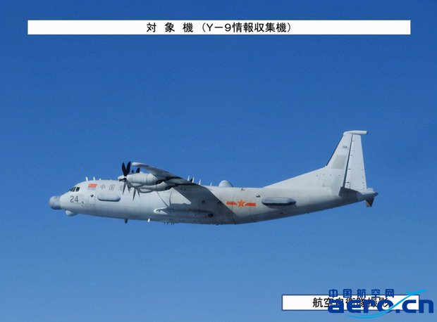 日本統(tǒng)合幕僚監(jiān)部公開的資料顯示,29日兩架解放軍軍機(jī)穿越宮古海峽飛行,機(jī)型分別為一架運-9偵察機(jī)和一架運-9反潛巡邏機(jī)。其中運-9偵察機(jī)經(jīng)宮古海峽從東海進(jìn)入太平洋海域,隨后向西南方向飛至與那國島南側(cè)、臺灣東部海域后,原路折返,整個飛行路線幾乎相當(dāng)于繞飛了釣魚島一周。而運-9反潛巡邏機(jī)經(jīng)宮古海峽從東海進(jìn)入太平洋海域后,原路折返。兩架解放軍軍機(jī)的圖片也被空自拍到,并被日本統(tǒng)合幕僚監(jiān)部公開。