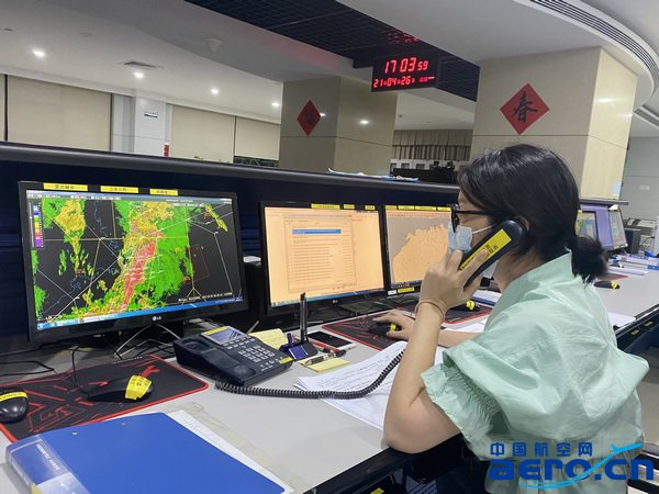 4月26日早08時,隨著弱冷空氣的南下滲透,天氣雷達監測到海南島西北部有大片較強的對流回波生成,“氣象服務崗”人員提早到達區域管制大廳,為管制員提供現場氣象服務,解答疑問,為決策服務提供依據,有效提高了雷雨天氣下的服務保障。下午13時,終端區西南部開始有對流回波生成,值班預報員結合最新實況資料及數值預報產品綜合決策,預計16:30時后海口美蘭機場將遭遇雷雨天氣。值班預報員及時發布機場終端區預警和機場警報,并將最新預報結論通報管制部門以及各航空公司,提醒用戶做好雷雨天氣處置準備。16時48分,黑云壓城,白晝如夜,雷雨如約而至。整個初雷天氣過程共持續約3小時,期間氣象預報及觀測室共發布電碼報文8份,終端區預警和機場警報4份,“新氣象 心服務”微信服務群滾動發布氣象信息14條,電話服務80余次。