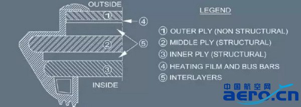 按照空客飛機的手冊,飛機的前風擋玻璃有6層,從外到內分別是: