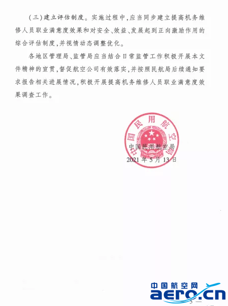 5月14日,《民航局關(guān)于提高機(jī)務(wù)維修人員職業(yè)滿意度的指導(dǎo)意見》(以下簡(jiǎn)稱“《意見》”)正式發(fā)布,將有助于提升機(jī)務(wù)維修技術(shù)進(jìn)步水平,改善一線機(jī)務(wù)維修人員工作生活條件,促進(jìn)機(jī)務(wù)維修隊(duì)伍整體能力素質(zhì)水平提升,為民航安全發(fā)展、高質(zhì)量發(fā)展保駕護(hù)航。