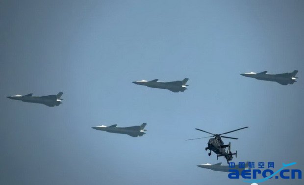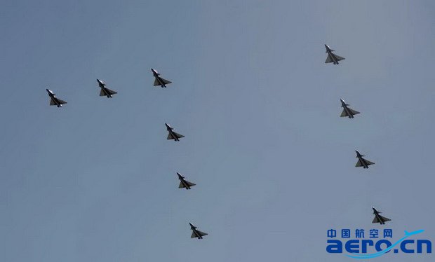 令人矚目的殲擊機梯隊轟鳴著列陣飛來,15架殲20飛機組成3個編隊沿著黨旗指引的方向振翅奮飛,以如此大規模飛過天安門廣場尚屬首次。殲20飛機研制是適應未來戰場需要,由航空工業自主研制的我國最新一代隱身戰斗機,殲20研制成功并裝備部隊,進一步提升了我空軍綜合作戰能力,實現了我國航空工業研制能力和航空武器裝備建設從第三代向第四代的跨越。