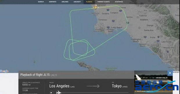 它盤旋了一圈,大約45分鐘后安全降落在洛杉磯國際機場。