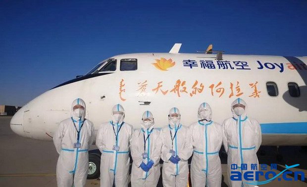 為全力支持額濟納旗疫情防控工作,幸福航空已成立專項工作組負責醫療包機任務的溝通及保障工作,同時將調派飛行機組、客艙乘務組、航空安全員及調配新舟60備份運力在阿拉善左旗待命。