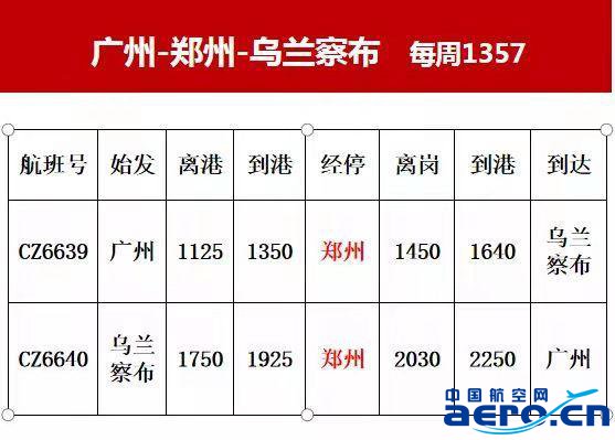 10月31日起,南航河南公司將新增廣州-鄭州-烏蘭察布往返航線,班期為每周一、三、五、七,執行日期為:2021年10月31日至2022年3月26日。
