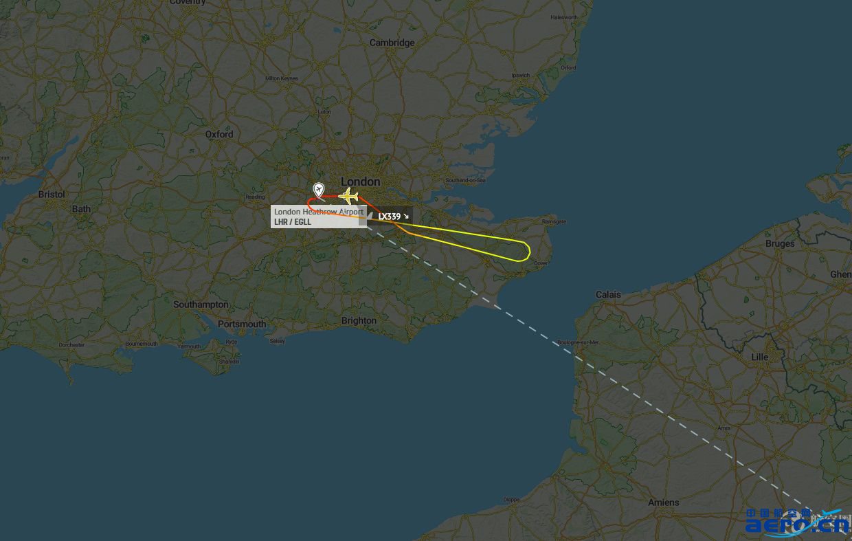綜合外媒報道, 2021 年11月7日,瑞士航空LX339 航班從希思羅機場起飛飛往蘇黎世,但在抵達英吉利海峽前掉頭。