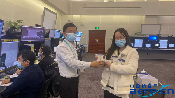 飛行員和管制員就像風箏與線,風箏飛得再高再遠,都需要線牽引著。“謝謝指揮,祝您元旦快樂”,飛行員時不時通過無線電向管制員發來的節日祝福,這是對管制員過去一年來工作的感謝與肯定。管制運行部領導也在2021年的最后一個夜晚到一線看望大家,為在堅守崗位的管制員送來了2022年的第一杯奶茶。奶茶的香甜滋潤心田,管制員也已做好準備,安全保障再出發,為民航空管高質量發展貢獻自己的力量。