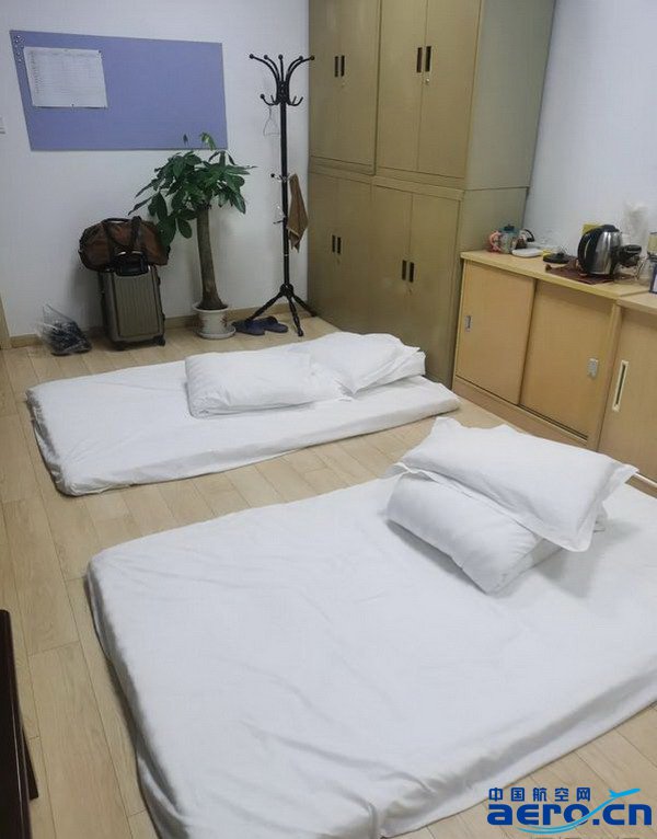 因封閉執(zhí)勤人員超過正常執(zhí)勤人員數(shù)量,管制員休息房間不足,因此部分管制員需要睡大通鋪。幾平米的辦公室,臨時被改為雙人間,兩個床墊之間相距不足半米。為保證管制員生活質量,終端管制室根據(jù)個人睡覺習慣,合理進行房間分配,并提供了充足的水果飯菜、洗漱用品等,確保管制員擁有良好的休息環(huán)境。3月14日,第二階段集中運行人員進駐終端。其中一位管制員這樣描述:“能感覺到第一批人的疲憊,輪換時見到彼此,話都說不出來,互相點點頭就算打招呼了”。