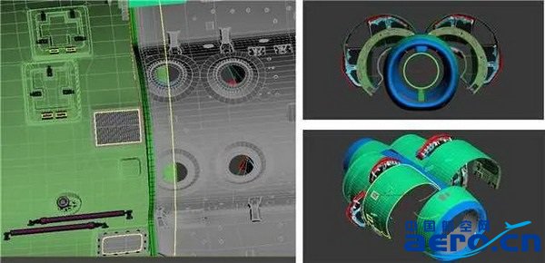 項目自2020年4月啟動以來共經歷了模型采集、模型制作和程序系統開發三個階段,目標是以空客A330飛機TRENT700型發動機為例,建立一套完整的數據模型系統。其中,發動機模型采集已于2020年11月完成,由于發動機外部件交錯復雜,需要結合手冊及實物進行逆向建模,并且模型數據龐大,三角面數高達7500萬個,為了確保系統在移動設備上正常運行,項目組花了大量的時間進行減面優化,降低模型的整體尺寸,提高運行速度。最終TRENT700發動機的完整模型在2021年11月順利完成。