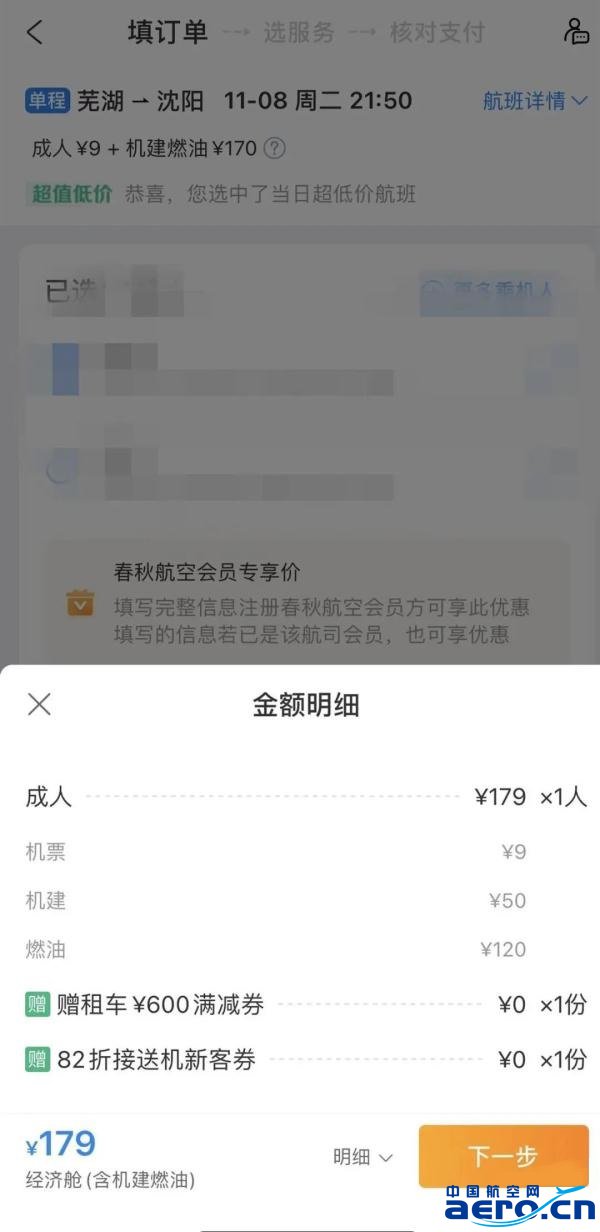 以蕪湖至沈陽為例,只需另支付170元機(jī)建燃油費(fèi)