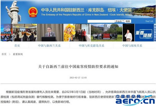 2月27至28日,中國駐新西蘭、馬來西亞、柬埔寨、老撾、南非、匈牙利大使館相繼發布公告:自2023年3月1日起(當地時間),允許搭乘自以上各國來華直飛航班人員以抗原檢測(包括用試劑盒自測)替代核酸檢測。同時,航空公司不再查驗登機前核酸檢測陰性證明及抗原檢測結果。