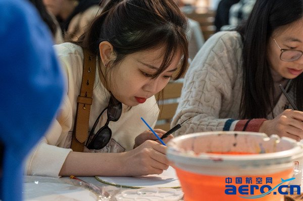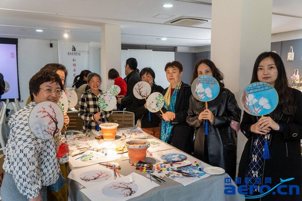 隨后,女神們來到手繪團扇的制作現場。老師對團扇背后蘊含的深厚文化藝術內涵的豐富闡釋,激起了大家心中對古典雅致追求的熱情。“先用毛筆勾勒出花的形狀,用淡墨、筆尖蘸少許花青來勾勒出葉子的形狀,然后再用深淺不同的海棠紅來畫花瓣,顏色不宜過重。”老師娓娓道來,一步一步地講解團扇的繪制方法。“學生們”聽得津津有味,迫不及待地拿起毛筆,躍躍欲試。在老師的指導下,大家興致勃勃地開始作畫,時不時互相交流,現場氣氛十分活躍。經過一個多小時的努力,一朵朵生動的花、一株株青翠的竹躍然“扇”上,原本空白的團扇變成了一把把色彩斑斕的“藝術品”,每一扇都那么別具風情、搖曳生輝。