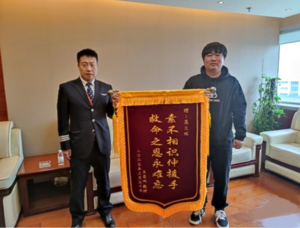 近日,一面印有“素不相識伸援手、救命之恩永難忘”的錦旗送到了海航航空旗下首都航空北京總部大樓,一段有溫度的佳話迅速傳開。首都航空飛行部機長高文瑞憑借其專業技能以及救死扶傷的精神,救助遭遇食物卡喉的王先生脫離險境。