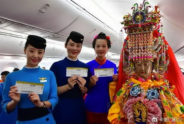 據新周刊,早在2017年7月1日,湄洲媽祖就曾搭乘廈門航空,飛往馬來西亞吉隆坡進行神事交流活動。由“千里眼”、“順風耳”作為護法隨行,并且還有屬于自己的登機牌。