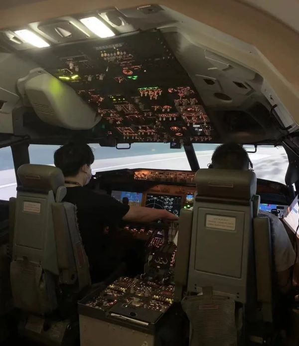 在飛行模擬機訓練開始前,管制員以四人為一組,走入Boeing737 MAX模擬機,期待著體驗飛行訓練。在模擬飛行過程中,以雷雨繞飛為特訓內容,機載氣象雷達顯示出黃色、紅色部分的雷雨天氣。飛行教員特地指揮飛機繞飛雷雨,管制員按操作指引駕駛飛行模擬機,在緊張有序的操作之后,安全避讓了雷雨天氣范圍。讓管制員“切實”感受到飛機進入復雜天氣后的不良影響,將自身帶入飛行和乘客角色,理解地空差異,更好地將指揮與服務結合起來。