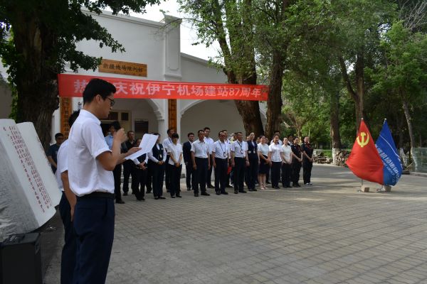 6月8日上午,伊寧機場在新疆機場陳列館前舉行建站87周年紀念活動,以此緬懷先烈、傳承革命精神,激勵民航“接班人”奮勇前進。