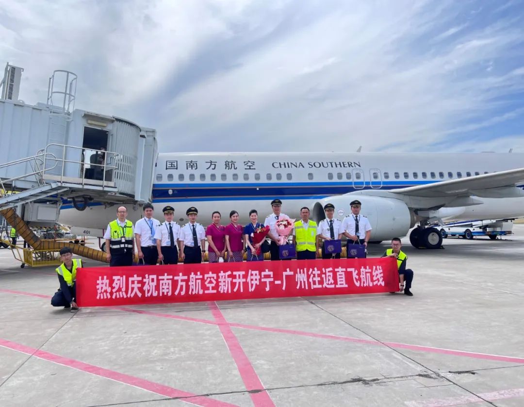 2023年7月6日,由南方航空集團有限公司執飛的波音737-800機型飛機降落在伊寧機場,標志著南方航空伊寧-廣州航線首航成功。