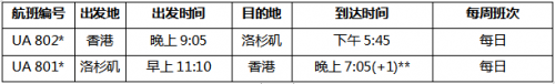 10月29日起,新增航班UA802將于每日傍晚從香港出發,并于當地時間同日下午到達洛杉磯。10月28日起,回程航班UA801于每日早上出發,于當地時間的次日晚上到達香港。香港— 洛杉磯的航班將由波音787-9夢想客機營運,機艙設有48個United Polaris®商務艙座位,21個豪華經濟艙(United Premium Plus®)座位,以及188個經濟艙(United Economy®)座位。
