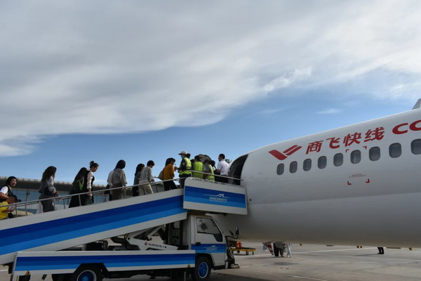 9月10日,教師節當天,伊寧機場攜手中國商飛開展教師節“環疆飛”主題活動,伊寧機場與中國商飛積極籌劃,邀請伊犁州、伊寧市 33名教師乘坐體驗國產ARJ21支線飛機的舒適性,感受國產民機的便捷性和通達性。此次飛行從伊寧機場起飛前往那拉提機場,空中飛行時長40分鐘,之后由那拉提機場返回。